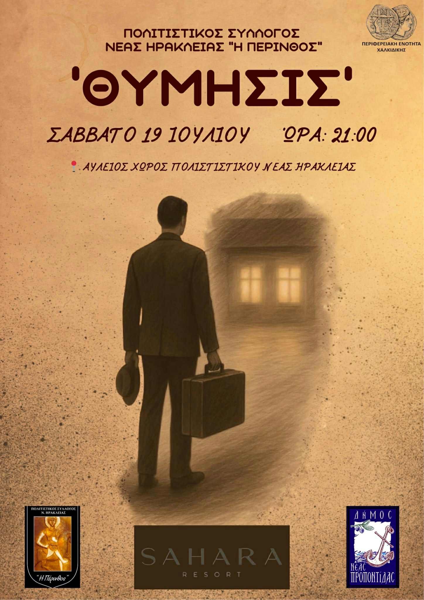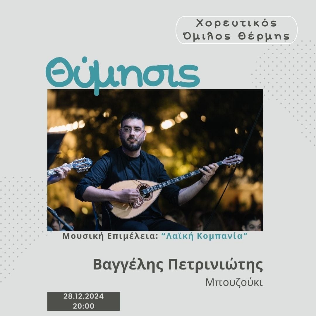 «Θύμισης», μια εξαιρετική παράσταση που συνδυάζει μουσική, θέατρο και χορό έλαβε χώρα στην Θέρμη (28/12/2024) και τη Νέα Ηράκλεια Χαλκιδικής (19/7/2025) με την συμμετοχή πολλών χορευτών, ηθοποιών και μουσικών καθώς και την υποστήριξη του χορευτικού ομίλου Θέρμης και του πολιτιστικού συλλόγου Νέας Ηράκλειας «Η Πέρινθος».